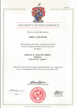 Bachelor of Education (Honours) in Educational Support (Stellenbosch University)