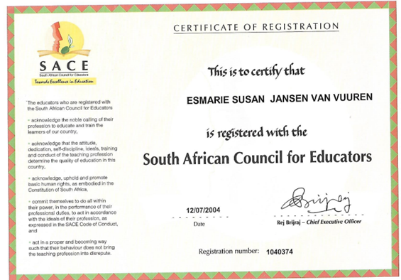 I hold a Bachelor of Education (Honours) in Educational Support (Stellenbosch University), and I am trained in Vision Therapy, the Do & Learn Program, Cognitive and Learning Support Interventions, and Auditory Processing / Filtered Sound Training. My approach is grounded in Vygotsky’s learning theory and built on scaffolding—guiding learners step-by-step just beyond what they can achieve independently, until skills become secure, automatic, and confidently applied.
